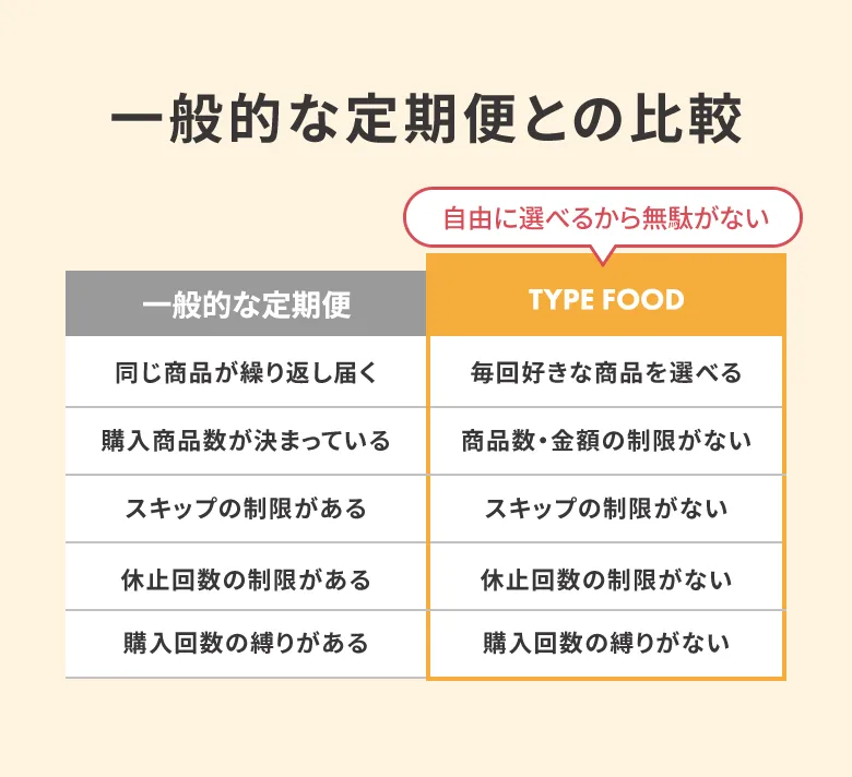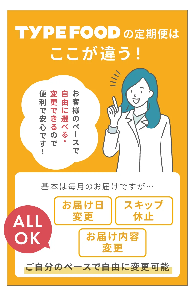 TYPE FOODの定期便では、はじめに商品をご提案します。最終的に購入される商品数はお客様ご自身でお選びいただけます。