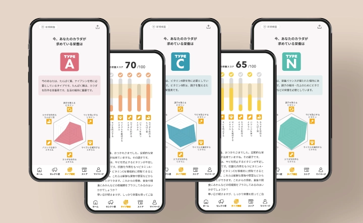 検査で分かった栄養状態をもとに、5種類の中からあなたの栄養タイプがわかります。