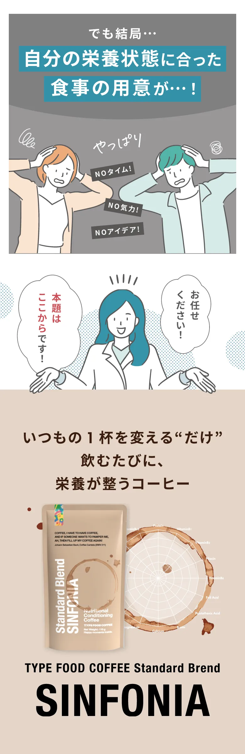 検査でわかった栄養タイプに合わせて、あなたに必要な栄養が入ったコーヒーを選ぶことができます。